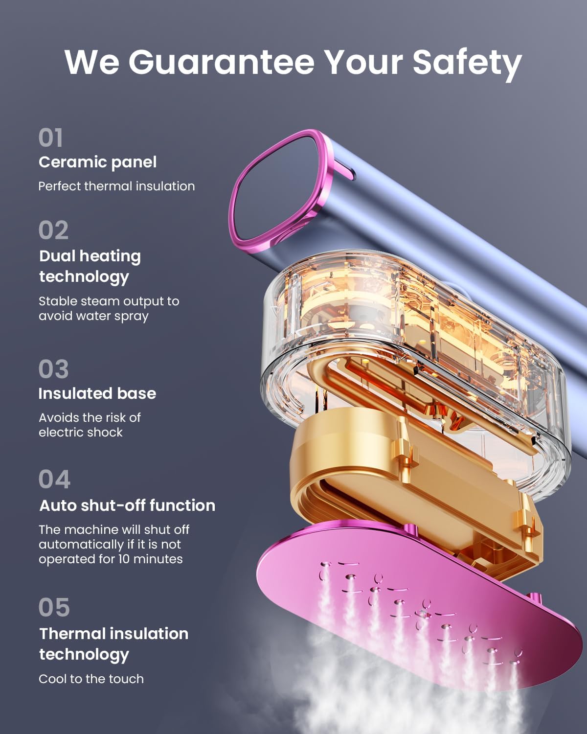 The portable steam iron offers dual voltage 100-240 V, automatically adapting to different international electrical systems for worry-free use during your travels. Compact and lightweight, with only 1.45 pounds and dimensions of 10 x 3 x 1.5 inches, it is easy to handle and transport. Its design includes a practical storage bag, ideal for keeping it protected and ready to use in any destination, be it Europe, the United States, Japan or other countries. Perfect for business travelers looking for efficiency and convenience in the care of their clothes.